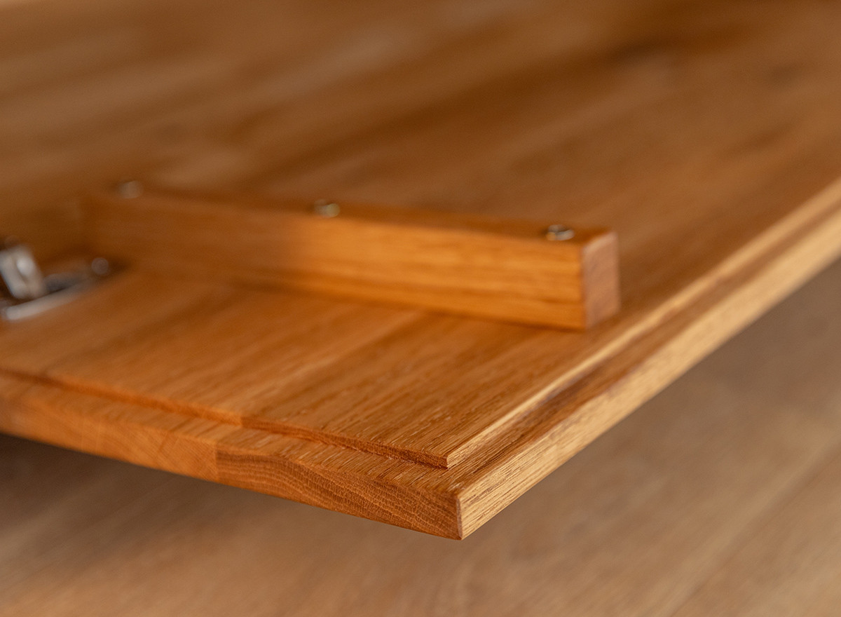 A bútorcsalád nappali bútorai teljes egészében valódi tölgyfából készülnek, felületkezelése natúr tölgy, olajozással. Ez a felületkezelés az egyik legjobb megoldás nem csak az esztétika, de a hasznosság szempontjából is.  A fa olajozása megvédi a teljes faszerkezetet a sérülésektől, kiemeli színük mélységét és nemességét, valamint növeli a tartósságot és megkönnyíti a bútor megfelelő tisztán tartását.