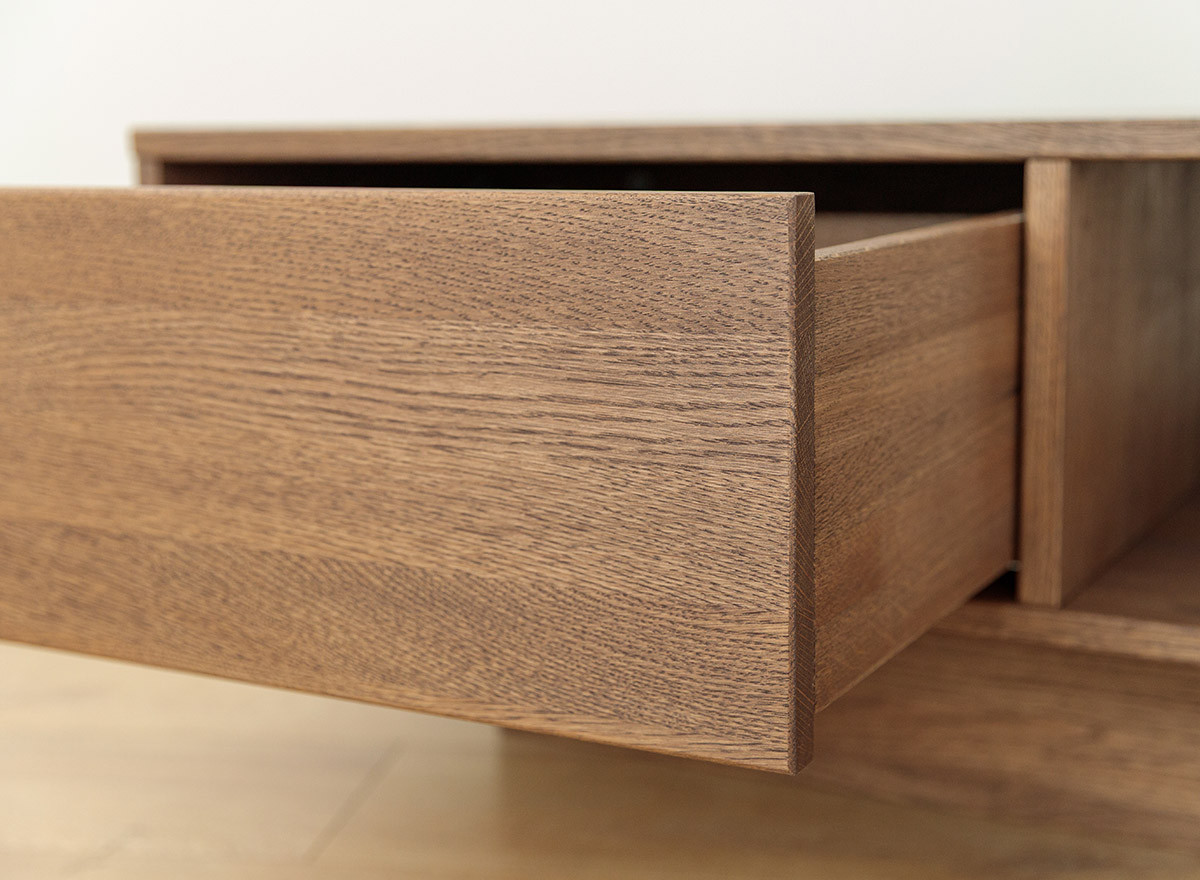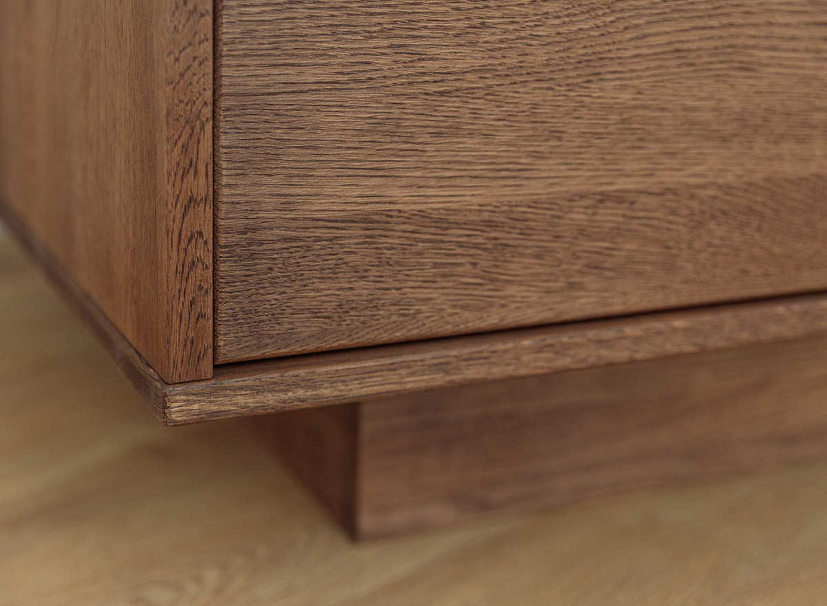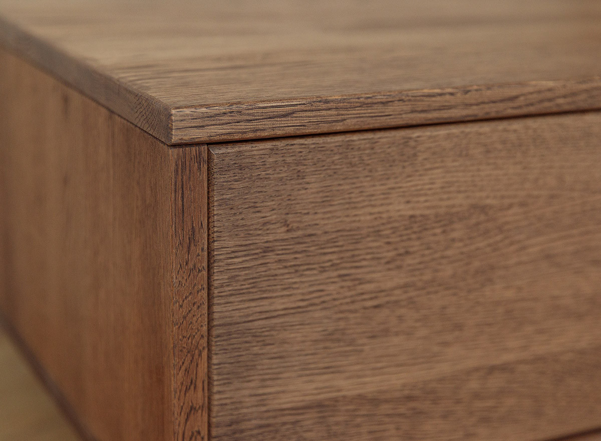 A bútorcsalád nappali bútorai teljes egészében valódi tölgyfából készülnek, felületkezelése a dohányszínű olajozás nem egy hagyományos szín. Ez a technika nem csupán színezi a fát, hanem kiemeli annak természetes erezetét, miközben védelmet is nyújt. A sötét tónus, mint ez a dohány szín azonnal prémium megjelenést kölcsönöz a helyiségnek. A tölgy markáns rajzolata a sötétebb olaj hatására „életre kel”, ami vizuális textúrát ad a bútornak. Tudtad, hogy a sötét bútorok optikailag „nehezebbnek” tűnnek? Kisebb helyiségekben érdemes csak egy-egy sötétebb bútort elhelyezni, hogy ne nyomja össze a teret, míg tágas, világos szobákban a sötét bútorok segítik a meghittség kialakítását.
