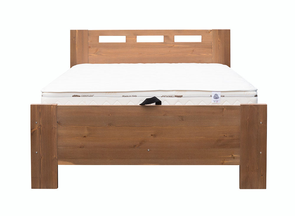 Az ágyrácsokat tartó keret anyagvastagsága 38 mm, erre kerülnek a 18 mm vastag ágyrácsok. Igazán erős, masszív vázszerkezet, Az ágy terhelhetősége 140 kg/fő. A matrac külön vásárolható. Ennek egyik előnye, hogy egyéni igényeknek a legmegfelelőbbet lehet az ágyba helyezni (keménységben, árban, magasságban, terhelhetőségben). A másik pozitívum, hogy a fekvőfelület bármikor cserélhető új matrac vásárlásával. Lapraszerelt, a termék szétszedett állapotban kerül átadásra, kellő gondossággal becsomagolva és ezt a használat helyén össze kell szerelni. A szükséges csavarok, facsapok és a szerelési rajz a csomagban megtalálható. Az ágy összeállításához csak csavarhúzó szükséges. A műveletek bárki számára egyszerűen elvégezhetők. Kiemelkedő, 22 mm vastag, kiváló minőségű északi fenyőfából készül (borovi fenyő), a részletekre odafigyelve. Az ágyneműtartó alja farost lemez.